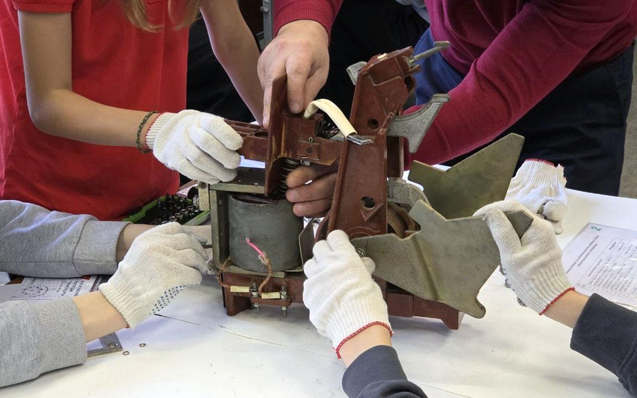 В Люблино гости погрузились в профпробы по профессиям: Мастер по ремонту транспорта, Мастер вагонного депо, Электромонтер-линейщик по монтажу воздушных линий высокого напряжения и контактной сети.