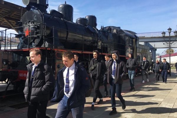 Инженер подразделения по сохранению исторического наследия Московской железной дороги Садретдинов Р.А. провел экскурсию по паровозному депо, интересно рассказывая об истории профессии машиниста. С перспективой развития скоростного движения будущих железнодорожников познакомил заместитель начальника Дирекции скоростного сообщения по кадрам и социальным вопросам Казанов А.С.