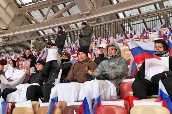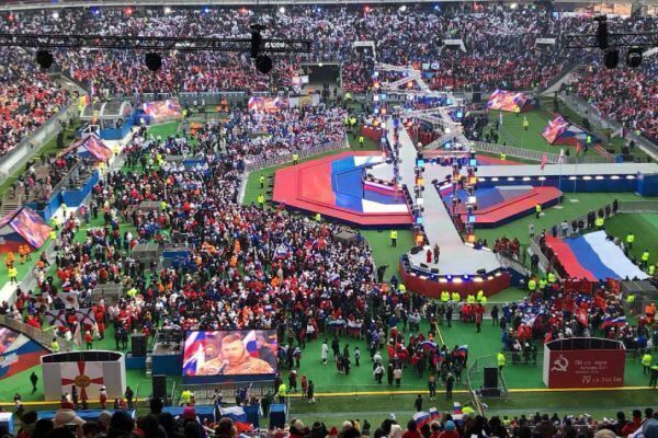 22 февраля на митинг-концерт «Слава защитникам Отечества» в «Лужниках» собралось около двухсот тысяч человек. Среди них были и студенты МКТ из групп МОЭТ-352/356/2512 и МОЭТ-354/358 вместе с преподавателем Бургсдорфом Е.А.
